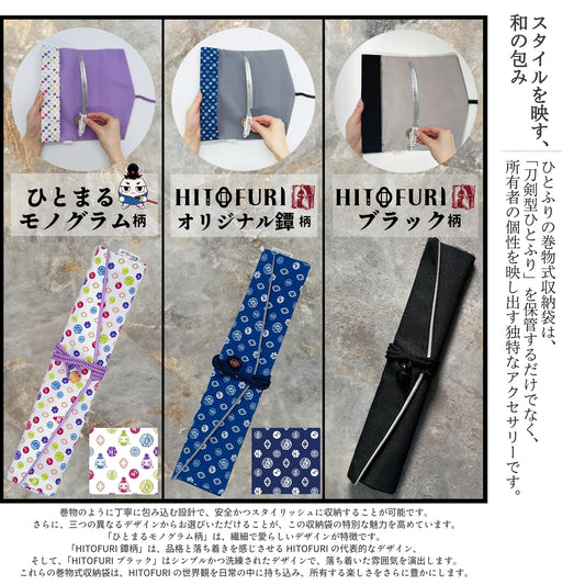 刀剣型ひとふり専用_巻物式収納袋 -HITOFURIオリジナル鐔(つば)柄-