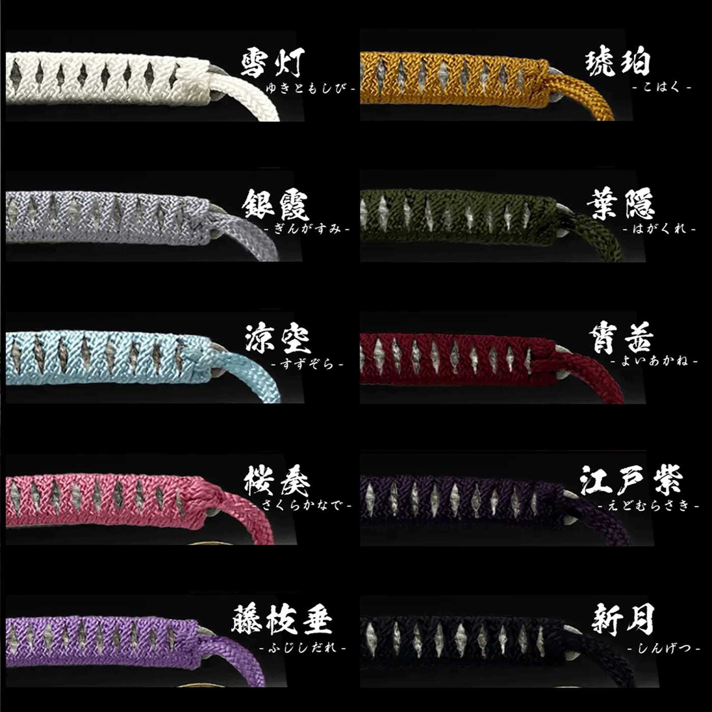 個性を表現するための豊富な選択肢を提供します。その持ち手の柄巻部分には、12種類の色からお選びいただけます。これらの色には、それぞれに日本の伝統や文化を感じさせる独自の「和名」が付けられており、それぞれの色が独特の物語を語ります。