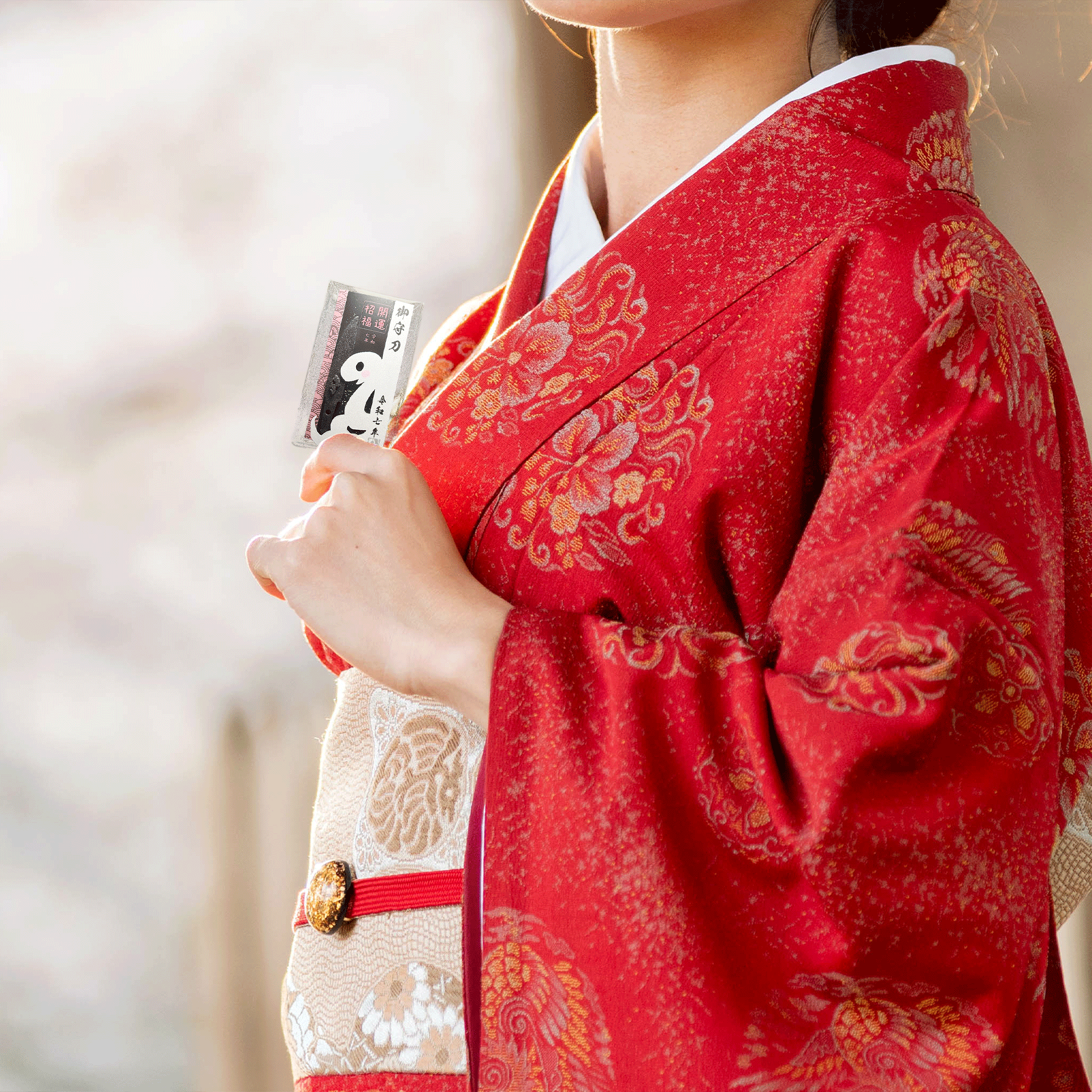 日本刀が持つ「守り」「祈り」「前へ進む力」。その精神を、いまの暮らしの中で静かに携えるために生まれた、御守型ひとふり・カード版です。