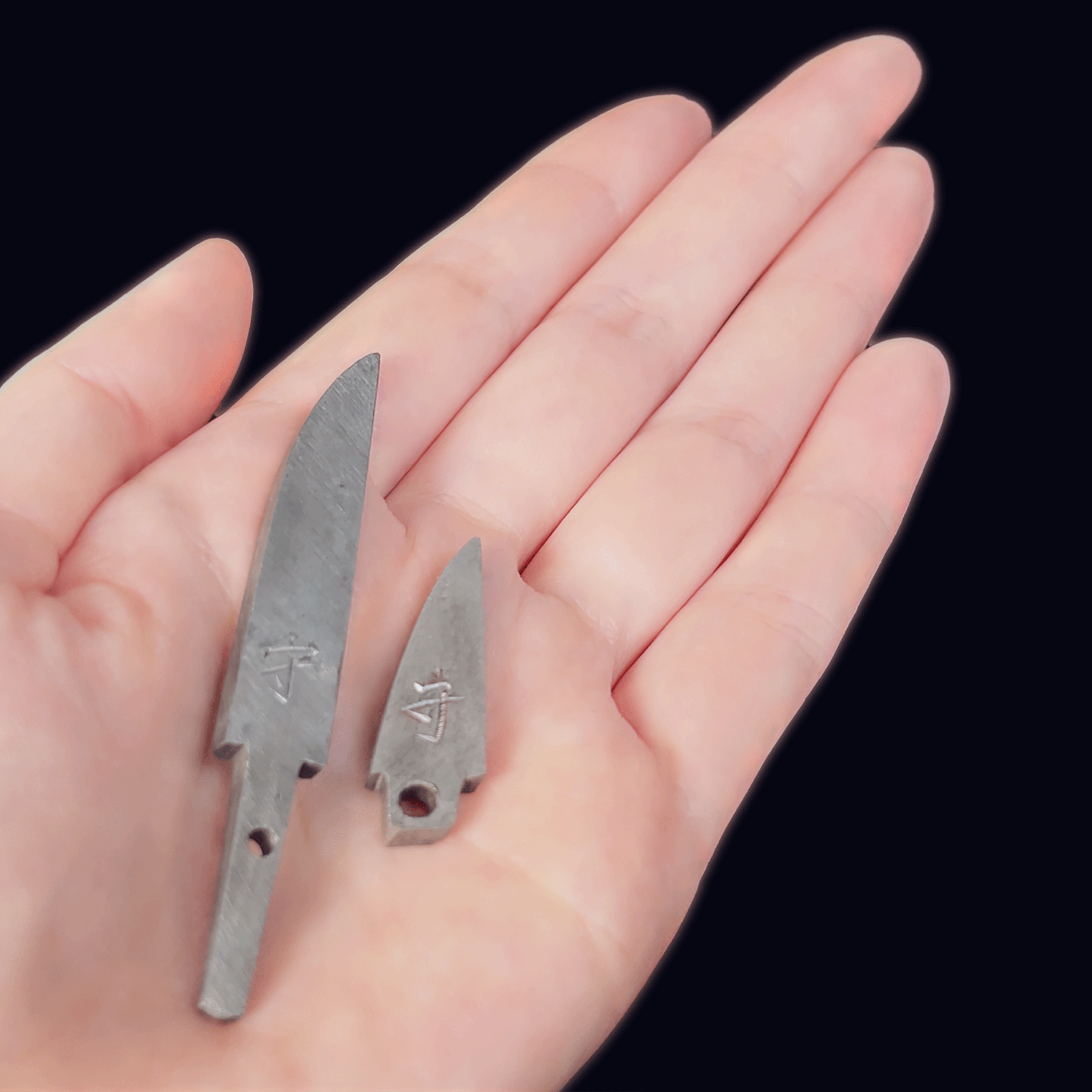 玉鋼の鍛錬の過程で生じる線状のくぼみ、くすみ、黒ずみなどは素材本来の特性であり、品質上の問題ではありません。そのため、素材の表情や仕上げの風合いに、違いが生じる場合があります。