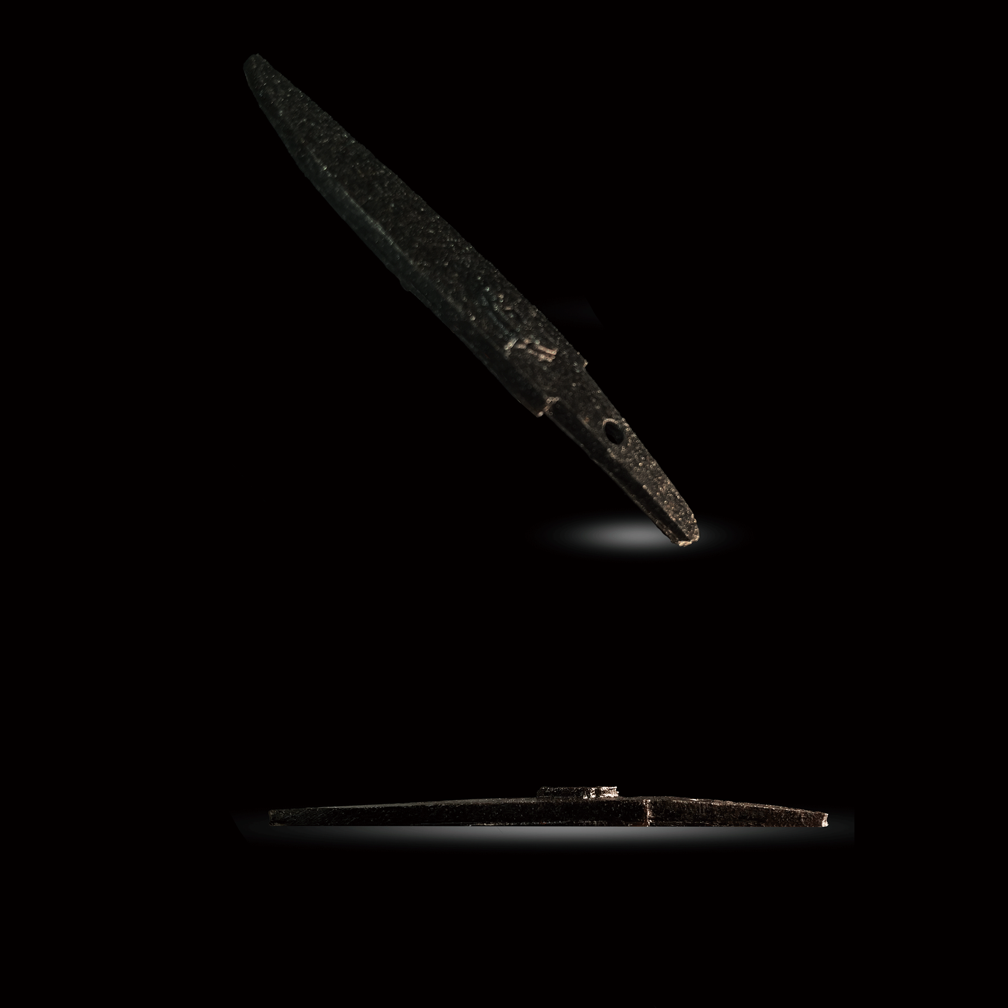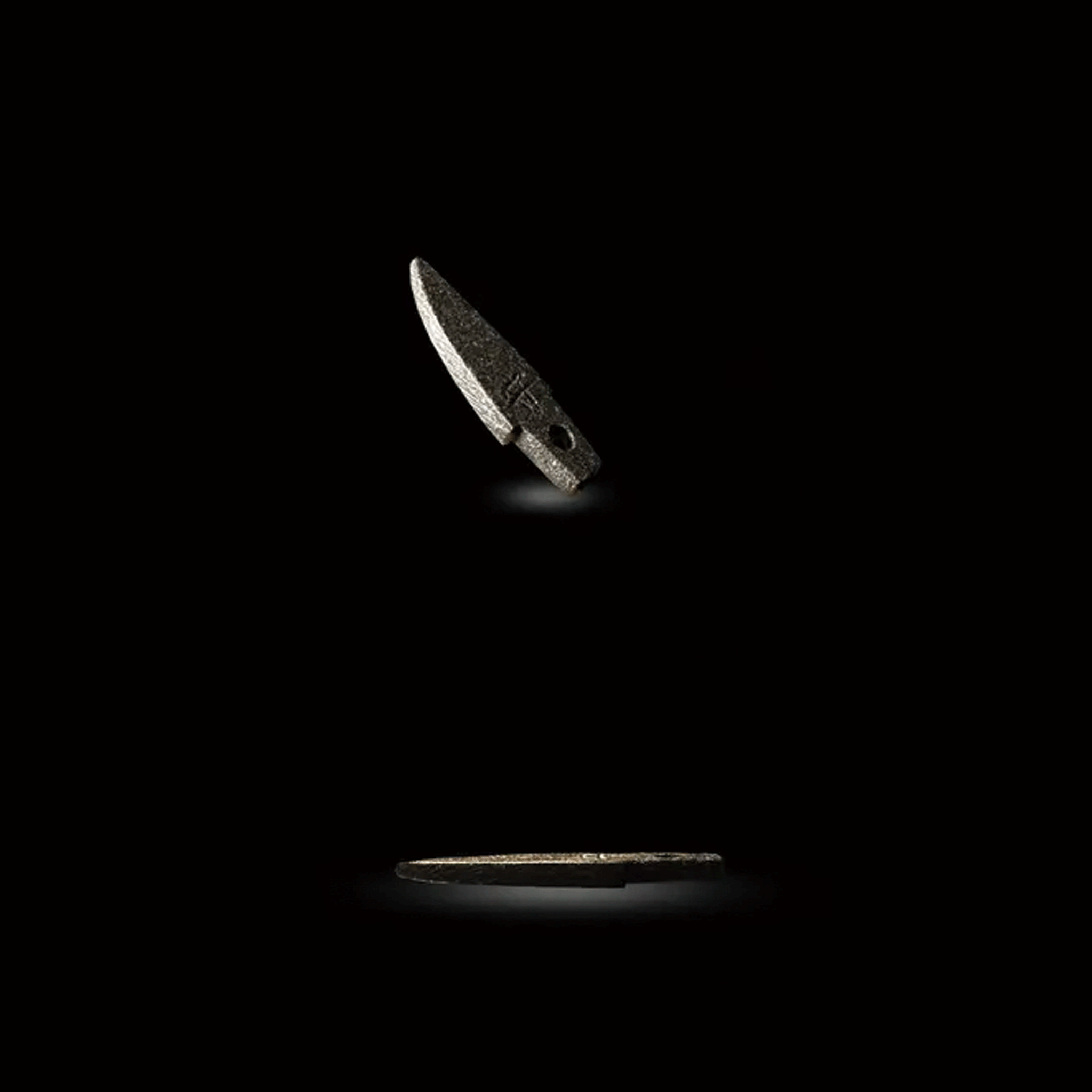 このお守り刀の形状は、刀鍛冶・安藤広康が実際に成形した玉鋼製の小さな御守り刀を原型とし、細部まで忠実に型取りを行い、仕上げています。日本刀として完成した一振りと同じ時を過ごし、同じ熱と想いを受け止めてきた玉鋼だからこそ宿る、静かで、確かな存在感。